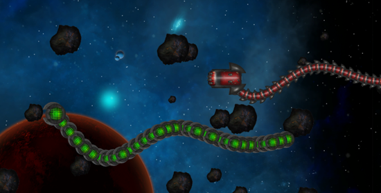 The segment wave also uses a sine-like curve movement pattern, but has some custom components that are attached to each object that spawns in the wave. These components ‘attach’ each object in the wave to the object that spawned in front of it. The wave also has a ‘head’ object that spawns first (with the next object being attached to that, and so on…). With this pattern, you can achieve worm or snake-like pattern movement. Destroying one object in the center of the segment will cut-off movement of all the rest that were attached behind the one which was destroyed.