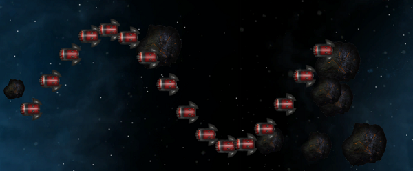 Some other features that most wave components have is the ability to assign rotation (and rotation direction/speed) to each member object of the wave, as well as spawn delay time in-between individual objects. Many of the wave components also allow you to specify a ‘separation factor’ which increases the distance between objects in a wave that might otherwise normally be too close.